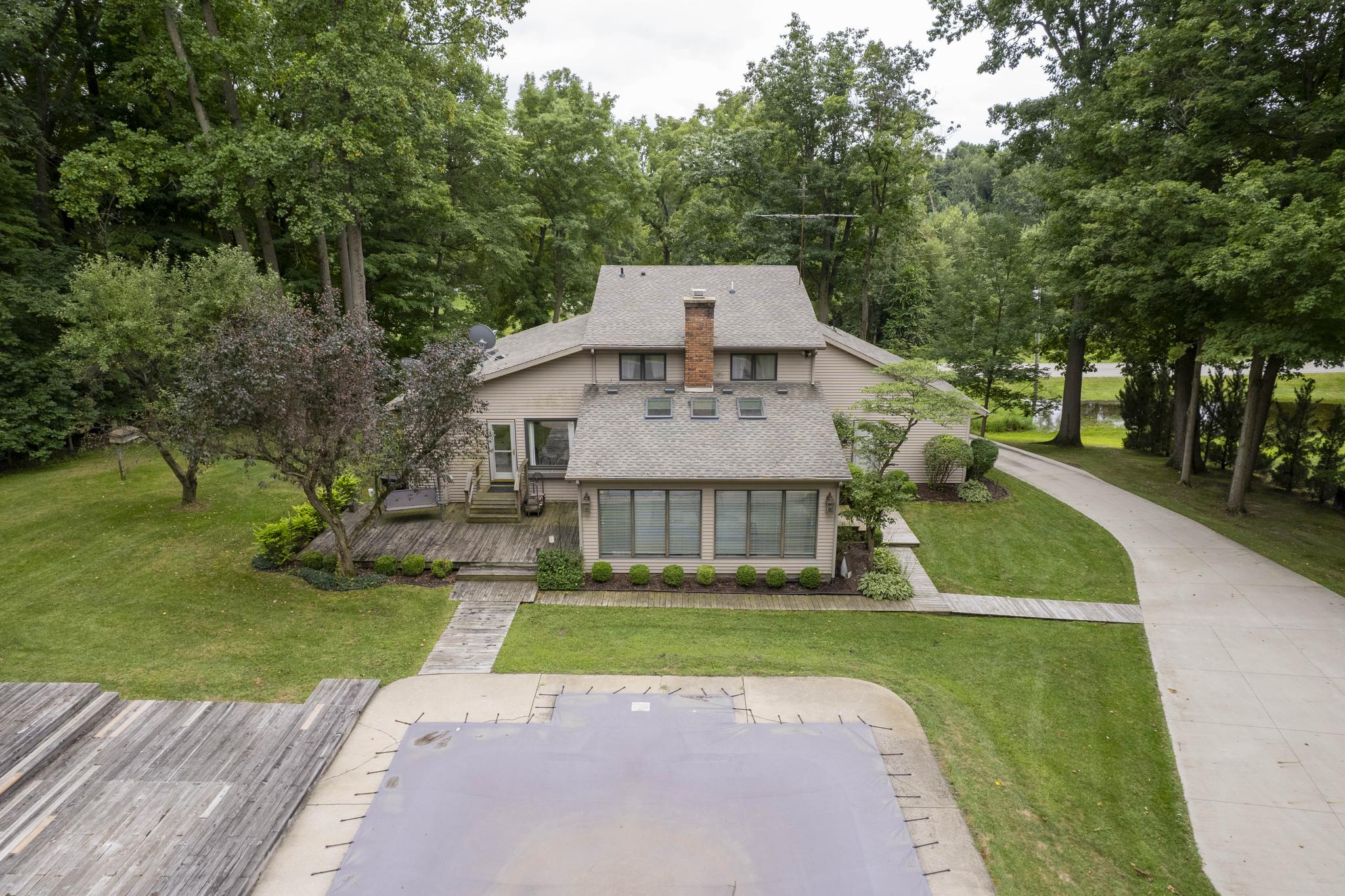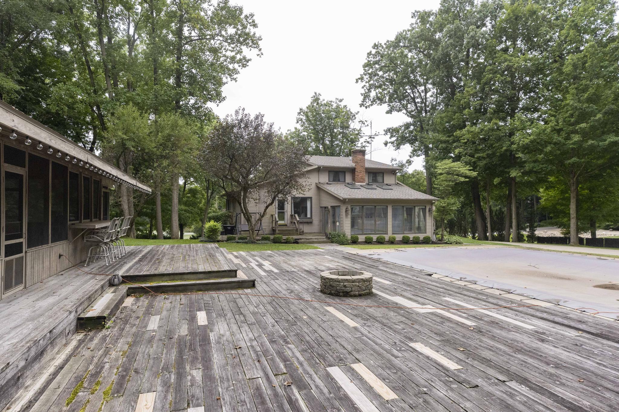Get into NATURE, Michiana! You will love this amazing, peaceful 10 acre parcel on the south side of South Bend. Gorgeous landscaping welcomes you to the property, as you follow the drive behind the house to enter the "playground." Enormous decks flank the in-ground pool, with your own camp sized screened porch for parties and entertainment, regardless of the weather. The porch includes a full bath with shower, to keep swimmers from tracking into the house, and a mini fridge in the bar area, so parties are a breeze. The tennis court is great, and boasts basketball goals on either end, too. And what if you wanted to convert to pickleball? Opportunities are endless. And behind the tennis court, find the acres of woods for trail hiking, snowmobiling, hunting or more. But wait, go inside to find four bedrooms, three and a half baths, beautiful living spaces and more. There's even a generator, in case of any electrical breach. Pictures and video really just cannot do justice to this amazing homestead. And while you feel so remote in the country setting, shopping, schools, restaurants and more are just minutes away. Don't wait to come see this fabulous property for yourself, because this country dream is ALL ABOUT YOU!